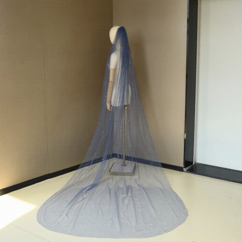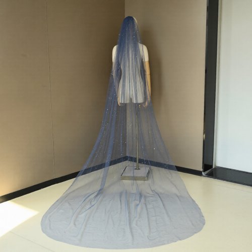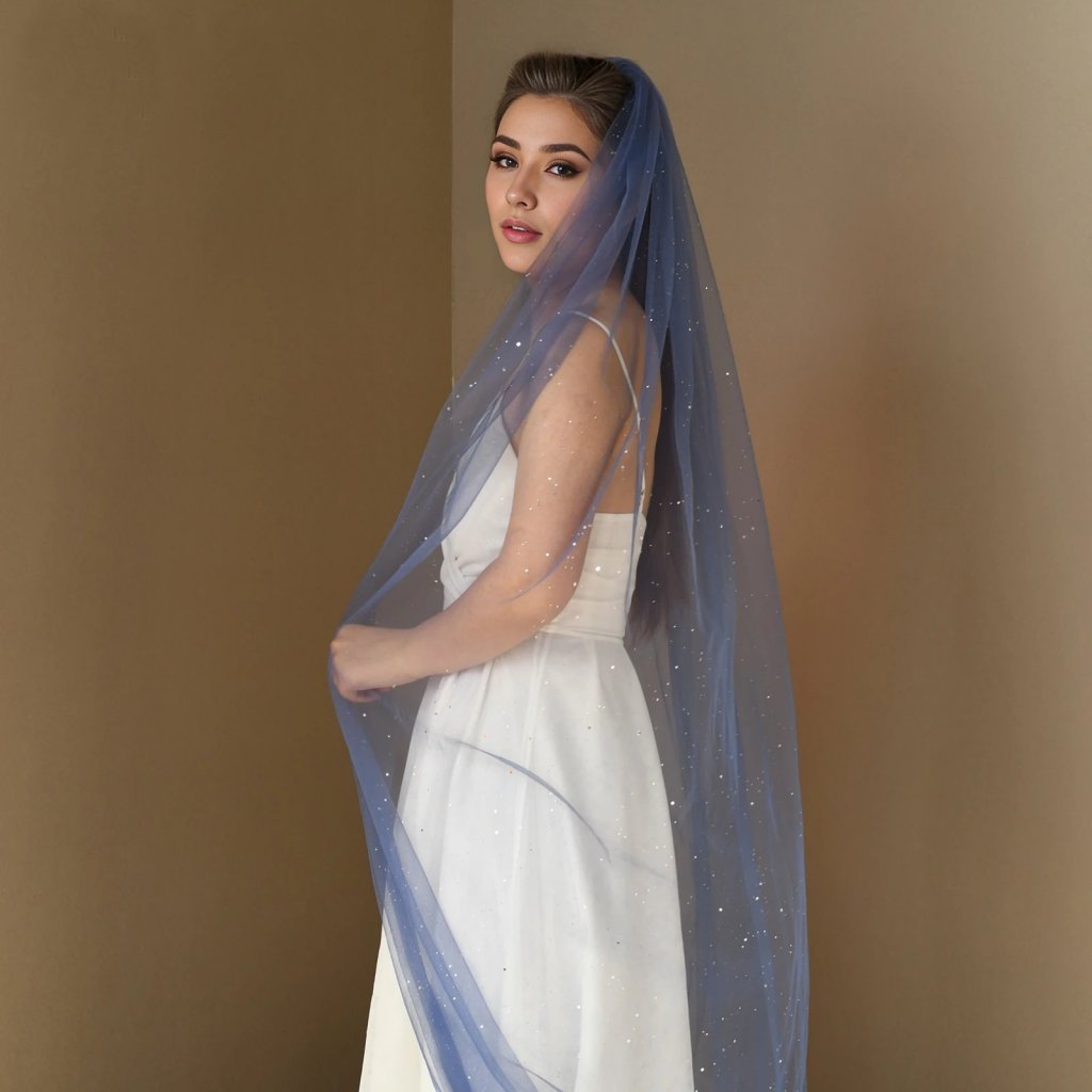 Edge/Description: Sparkle tulle. Raw edge. Gathered on to a comb. Something different for your "something blue"